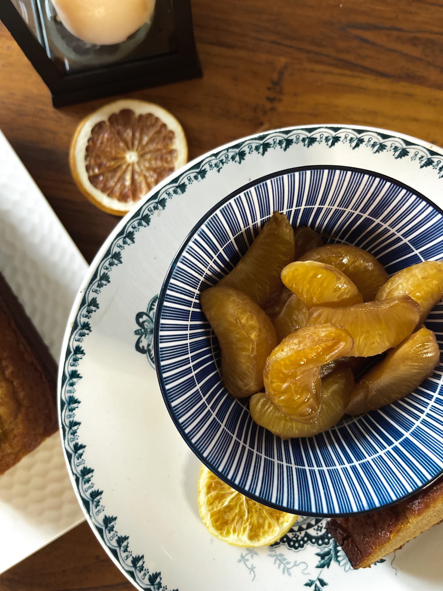 Vous pouvez servir la salade de clémentine avec une bûche, des petits biscuits sablés de Noël ou comme ici avec du pain d’épices, un régal !